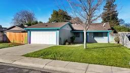 Sharp starter home, freshly painted interior, newer HVAC, solar system (lease is $78/mo), new blinds, laminate flooring, lighted ceiling fans in all the bedrooms, kitchen features newer appliances, peninsula island with breakfast bar & tile flooring, separate living room & family room, floor-to-ceiling brick fireplace in FR, 2-car garage with opener & shelving, large backyard includes a covered patio, RV / side access with new double gates and kids playgym stays. Close to school, parks, shopping and easy freeway access. Come and take a look!