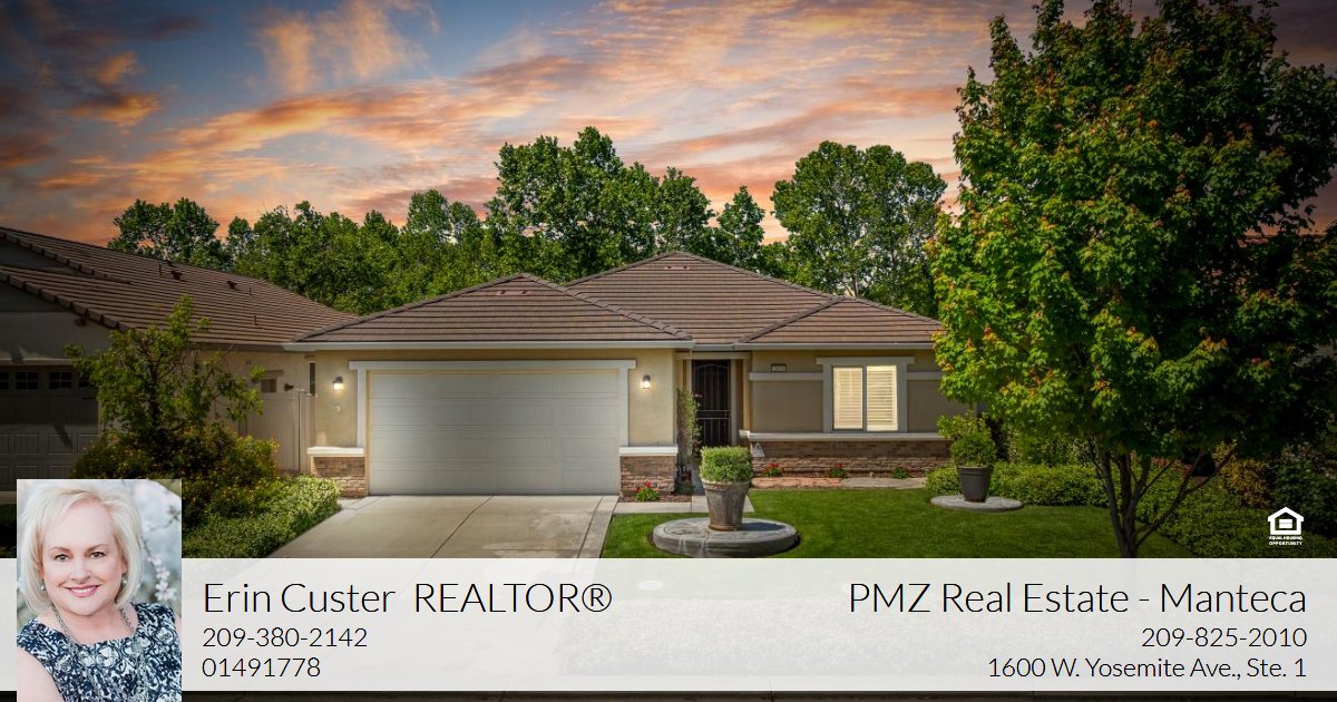 Welcome to this beautifully maintained, crystal clean, single story home in the sought-after Del Webb Woodbridge 55+community. Offering approximately 2128 sq ft, this 3-bedroom, 2-bath residence features an open-concept design with a spacious great room and an expansive kitchen complete with granite countertops, large center island, beautiful Whirlpool Gold Appliances and abundant cabinetry-ideal for both everyday living and entertaining. The thoughtful floor plan provides generous natural light, seamless flow and flexible space for guests or a home office. Plantation shutters and neutral finishes throughout create a clean, move-in ready environment. So close to the clubhouse and situated on a well-kept lot with mature landscaping, the outdoor space offers a sense of privacy and ease, perfect for enjoying quiet mornings or evening gatherings. The attached 2-car garage, freshly painted and finished with custom cabinetry and low maintenance design support a comfortable, simplified lifestyle. Located within a premier active adult community, residents enjoy access to resort style amenities including clubhouse, pool, fitness center, walking paths, and organized social activities. A wonderful opportunity to enjoy comfort, community, and convenience in one of Manteca's most desirable 55+ neighborhoods. Rest in the lovely Chinese Pistache Tree, Brazilian Jasmine, Red Geranium, decorative Potted Olive, African Daisy, Star Jasmine and Rockspray Cotoneaster a marvelous starter to make this Garden Home your own....and we bid you welcome home!
