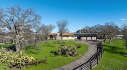Panoramic valley and sunset views from this Spanish style home sitting on usable 3.68 acres fenced and loaded with oaks, perfect for livestock. The courtyard with water fountain is the centerpiece for the detached second primary suite featuring Spanish tile floors, vaulted wood ceiling and full bath. As you enter the main home, the living room is a grand space, featuring a fireplace insert that serves as a warm focal point, vaulted beamed ceiling that complements the wood ceiling, while the wood framed door and entry casings add a touch of rustic charm. The bedroom provides a personal retreat, enhanced by the refined touch of crown molding and real oak wood floors adding architectural interest. The kitchen is equipped for culinary adventures, boasting tile granite and wood countertops that provide ample workspace and a high-end range oven. Large walk-in pantry offers an abundance of storage while the 1/2 bath, office/den, inside laundry room and sitting area complete the floorplan. Three car garage, metal carport, storage shed, animal shelter, paved driveway and entry gate all enhance this property. Embrace the opportunity to make this exceptional Calaveras foothill property your personal haven.